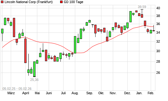 Mit dem Rücksetzer auf 34,69 EUR hat die Lincoln National-Aktie am 04.02.2026 die 100-Tage-Linie nach unten gekreuzt.