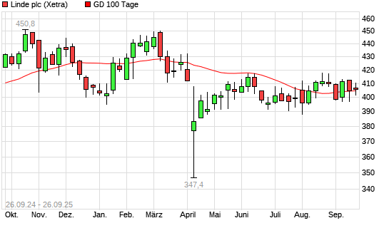 Mit dem Anstieg auf 405,40 EUR hat die Linde PLC-Aktie am 25.09.2025 die 100-Tage-Linie nach oben gekreuzt.
