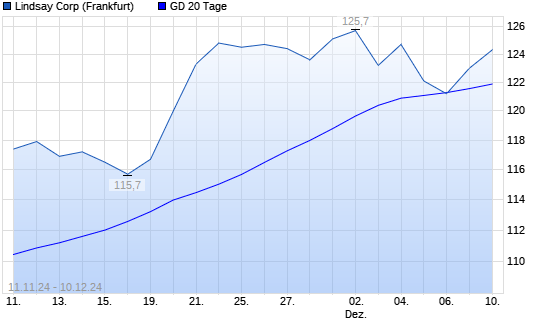 Mit dem Anstieg auf 123,00 EUR hat die Lindsay-Aktie am 09.12.2024 die 20-Tage-Linie nach oben gekreuzt.