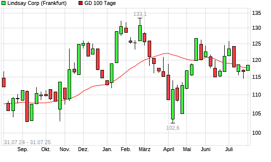 Mit dem Rücksetzer auf 117,50 EUR hat die Lindsay-Aktie am 30.07.2025 die 100-Tage-Linie nach unten gekreuzt.