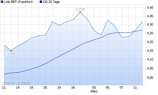 Mit dem Anstieg auf 4,27 EUR hat die Link REIT-Aktie am 11.03.2025 die 20-Tage-Linie nach oben gekreuzt.