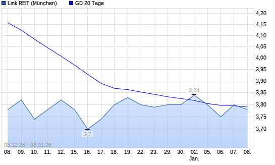 Mit dem Anstieg auf 3,80 EUR hat die Link REIT-Aktie am 07.01.2026 die 20-Tage-Linie nach oben gekreuzt.