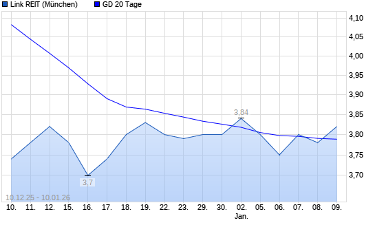 Mit dem Anstieg auf 3,78 EUR hat die Link REIT-Aktie am 09.01.2026 die 20-Tage-Linie nach oben gekreuzt.