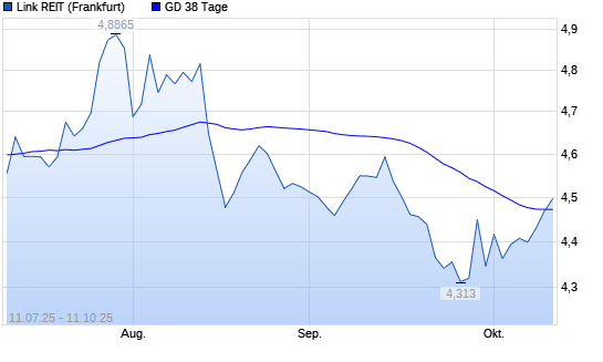 Mit dem Anstieg auf 4,50 EUR hat die Link REIT-Aktie am 10.10.2025 die 38-Tage-Linie nach oben gekreuzt.