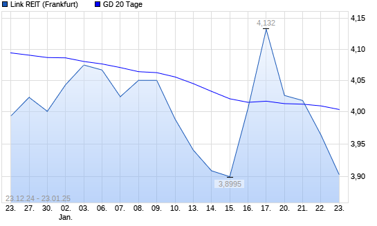 Mit dem Rücksetzer auf 3,96 EUR hat die Link REIT-Aktie am 22.01.2025 die 20-Tage-Linie nach unten gekreuzt.