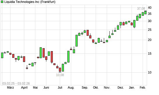 Mit dem Anstieg auf 36,96 EUR hat die Liquidia Technologies-Aktie (ISIN US53635D2027) am 02.02.2026 ein neues All-Time-High erreicht und damit den Kurs vom 30.01.2026 eingestellt.