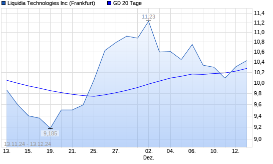 Mit dem Anstieg auf 10,31 EUR hat die Liquidia Technologies-Aktie am 12.12.2024 die 20-Tage-Linie nach oben gekreuzt.