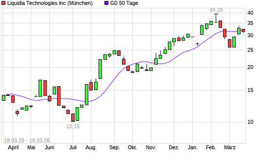 Mit dem Rücksetzer auf 31,00 EUR hat die Liquidia Technologies-Aktie am 17.03.2026 die 50-Tage-Linie nach unten gekreuzt.