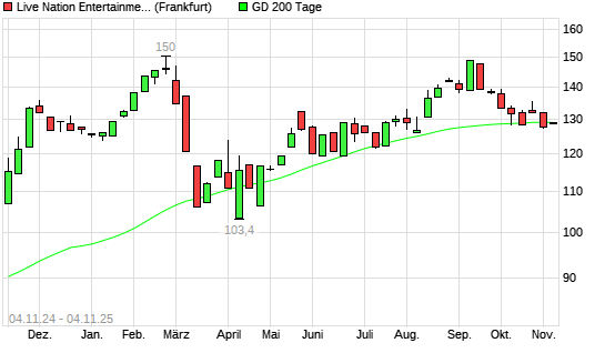 Mit dem Anstieg auf 129,05 EUR hat die Live Nation Entertainment-Aktie am 03.11.2025 die 200-Tage-Linie nach oben gekreuzt.