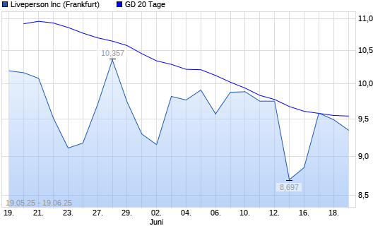 Mit dem Rücksetzer auf 0,63 EUR hat die LivePerson-Aktie am 18.06.2025 die 20-Tage-Linie nach unten gekreuzt.