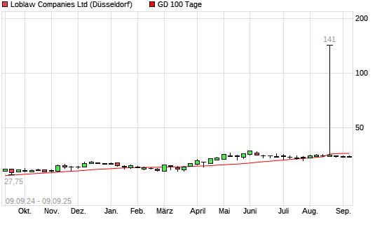 Mit dem Anstieg auf 35,20 EUR hat die Loblaw Companies-Aktie am 08.09.2025 die 100-Tage-Linie nach oben gekreuzt.
