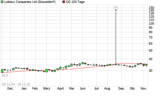 Mit dem Anstieg auf 34,20 EUR hat die Loblaw Companies-Aktie am 04.11.2025 die 100-Tage-Linie nach oben gekreuzt.