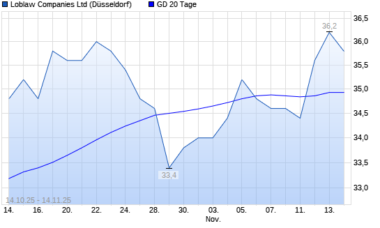 Mit dem Anstieg auf 36,00 EUR hat die Loblaw Companies-Aktie am 13.11.2025 die 20-Tage-Linie nach oben gekreuzt.