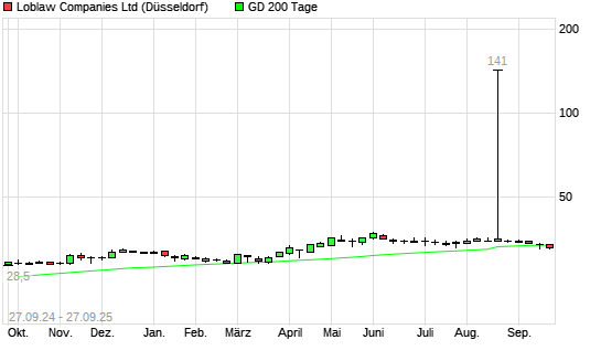 Mit dem Anstieg auf 32,80 EUR hat die Loblaw Companies-Aktie am 26.09.2025 die 200-Tage-Linie nach oben gekreuzt.