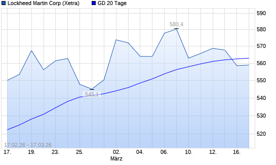Mit dem Rücksetzer auf 561,40 EUR hat die Lockheed Martin-Aktie am 16.03.2026 die 20-Tage-Linie nach unten gekreuzt.