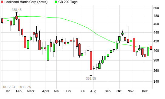 Mit dem Rücksetzer auf 402,15 EUR hat die Lockheed Martin-Aktie am 17.12.2025 die 200-Tage-Linie nach unten gekreuzt.