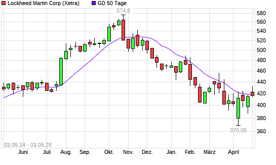 Mit dem Rücksetzer auf 417,40 EUR hat die Lockheed Martin-Aktie am 02.05.2025 die 50-Tage-Linie nach unten gekreuzt.