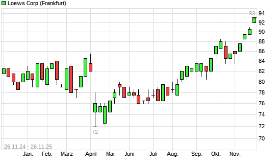 Mit dem Anstieg auf 93,00 EUR hat die Loews-Aktie (ISIN US5404241086) am 25.11.2025 ein neues All-Time-High erreicht und damit den Kurs vom 24.11.2025 eingestellt.