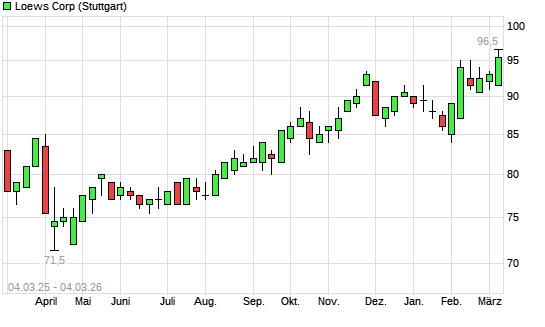 Mit dem Anstieg auf 95,00 EUR hat die Loews-Aktie (ISIN US5404241086) am 03.03.2026 ein neues All-Time-High erreicht und damit den Kurs vom 06.02.2026 eingestellt.