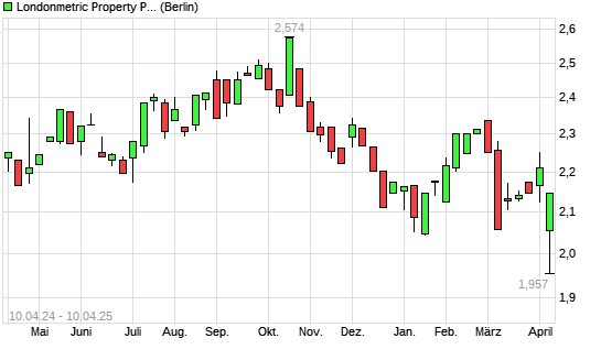 Mit dem Rücksetzer auf 1,96 EUR hat die Londonmetric Property-Aktie (ISIN GB00B4WFW713) am 09.04.2025 ein neues 12-Monats-Tief erreicht und damit den Kurs vom 07.04.2025 eingestellt.