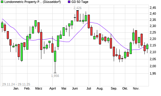 Mit dem Anstieg auf 2,14 EUR hat die Londonmetric Property-Aktie am 28.11.2025 die 50-Tage-Linie nach oben gekreuzt.