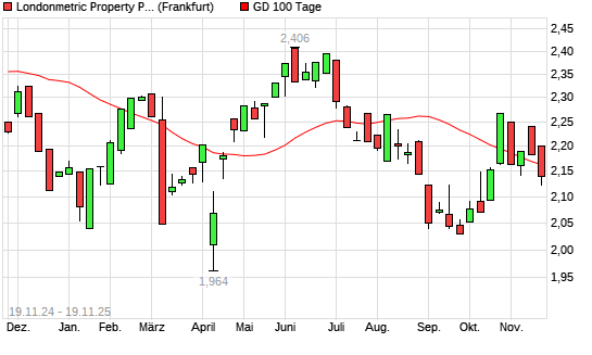 Mit dem Rücksetzer auf 2,12 EUR hat die Londonmetric Property-Aktie am 18.11.2025 die 100-Tage-Linie nach unten gekreuzt.