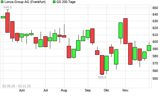 Mit dem Anstieg auf 599,40 EUR hat die Lonza Group-Aktie am 01.12.2025 die 200-Tage-Linie nach oben gekreuzt.