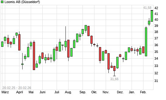 Mit dem Anstieg auf 41,08 EUR hat die Loomis AB SERIES B-Aktie (ISIN SE0014504817) am 19.02.2026 ein neues All-Time-High erreicht und damit den Kurs vom 18.02.2026 eingestellt.