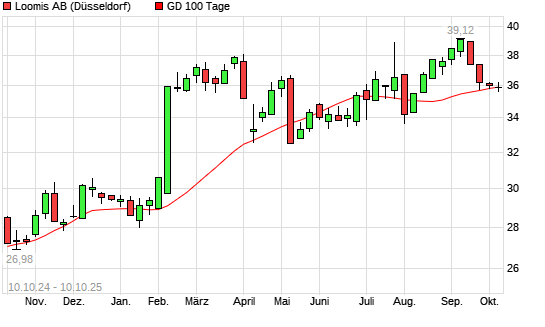 Mit dem Anstieg auf 36,14 EUR hat die Loomis AB SERIES B-Aktie am 09.10.2025 die 100-Tage-Linie nach oben gekreuzt.