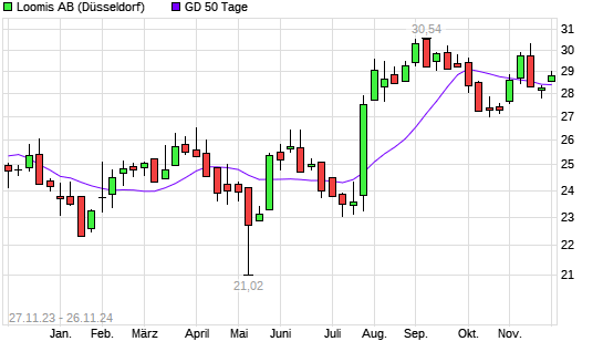 Mit dem Anstieg auf 28,88 EUR hat die Loomis AB SERIES B-Aktie am 25.11.2024 die 50-Tage-Linie nach oben gekreuzt.