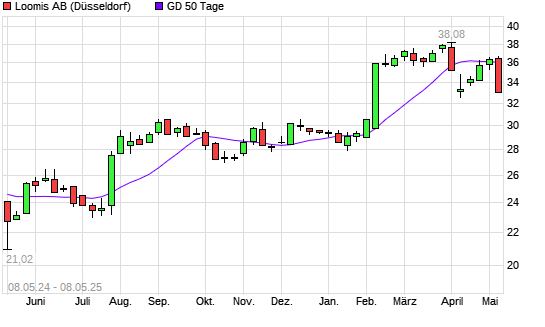 Mit dem Rücksetzer auf 35,28 EUR hat die Loomis AB SERIES B-Aktie am 07.05.2025 die 50-Tage-Linie nach unten gekreuzt.