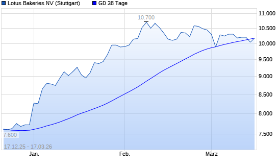 Mit dem Rücksetzer auf 10.120,00 EUR hat die Lotus Bakeries-Aktie am 16.03.2026 die 38-Tage-Linie nach unten gekreuzt.