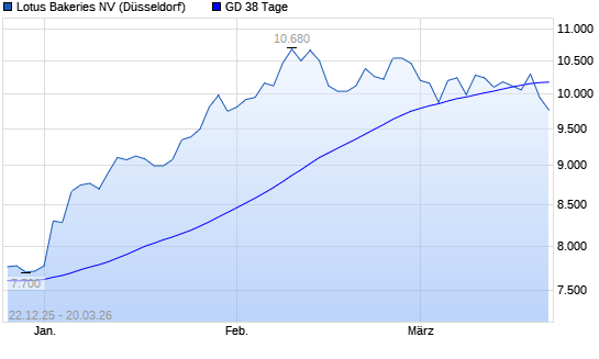 Mit dem Rücksetzer auf 10.020,00 EUR hat die Lotus Bakeries-Aktie am 19.03.2026 die 38-Tage-Linie nach unten gekreuzt.