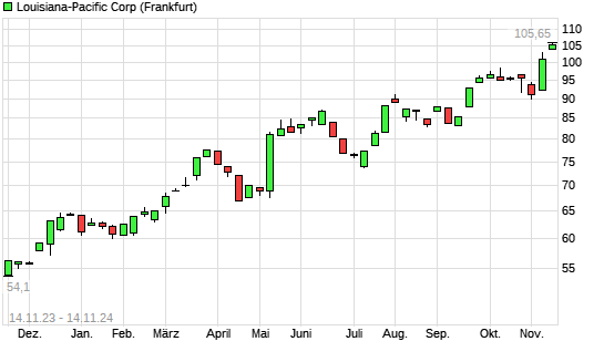 Mit dem Anstieg auf 105,65 EUR hat die Louisiana-Pacific-Aktie (ISIN US5463471053) am 13.11.2024 ein neues All-Time-High erreicht und damit den Kurs vom 12.11.2024 eingestellt.