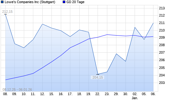 Mit dem Anstieg auf 210,10 EUR hat die Lowe's Companies-Aktie am 05.01.2026 die 20-Tage-Linie nach oben gekreuzt.