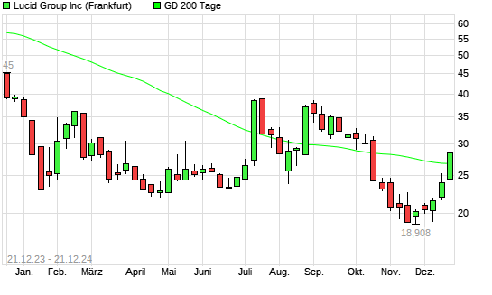 Mit dem Anstieg auf 2,84 EUR hat die Lucid Motors-Aktie am 20.12.2024 die 200-Tage-Linie nach oben gekreuzt.