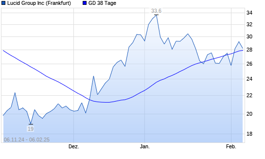 Mit dem Anstieg auf 2,92 EUR hat die Lucid Motors-Aktie am 05.02.2025 die 38-Tage-Linie nach oben gekreuzt.