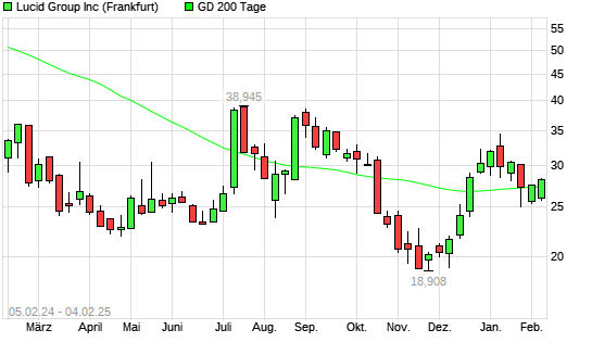 Mit dem Rücksetzer auf 2,58 EUR hat die Lucid Motors-Aktie am 03.02.2025 die 200-Tage-Linie nach unten gekreuzt.