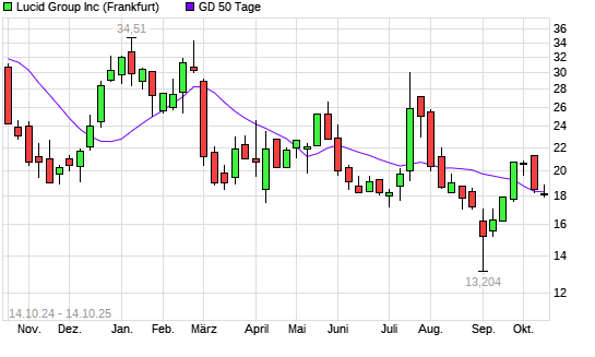 Mit dem Rücksetzer auf 18,15 EUR hat die Lucid Motors-Aktie am 13.10.2025 die 50-Tage-Linie nach unten gekreuzt.