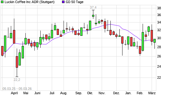Mit dem Anstieg auf 29,80 EUR hat die Luckin Coffee ADR-Aktie am 04.03.2026 die 50-Tage-Linie nach oben gekreuzt.