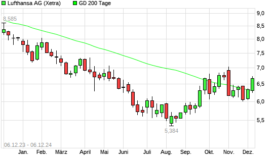 Mit dem Anstieg auf 6,56 EUR hat die Lufthansa-Aktie am 05.12.2024 die 200-Tage-Linie nach oben gekreuzt.