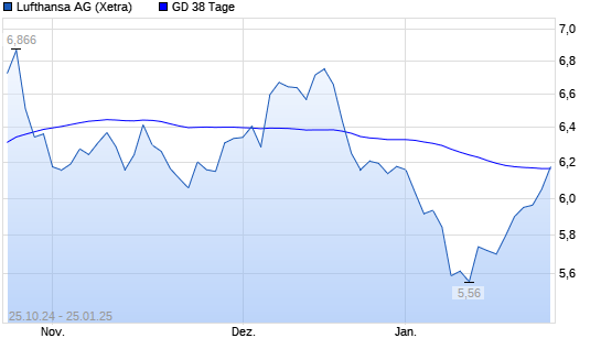 Mit dem Anstieg auf 6,16 EUR hat die Lufthansa-Aktie am 24.01.2025 die 38-Tage-Linie nach oben gekreuzt.