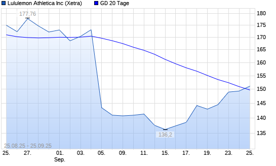 Mit dem Anstieg auf 152,02 EUR hat die Lululemon Athletica-Aktie am 24.09.2025 die 20-Tage-Linie nach oben gekreuzt.