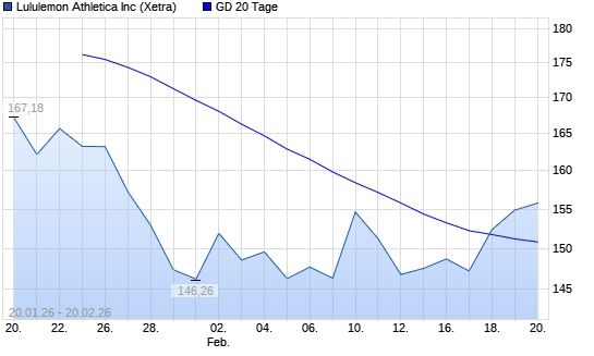 Mit dem Anstieg auf 153,92 EUR hat die Lululemon Athletica-Aktie am 19.02.2026 die 20-Tage-Linie nach oben gekreuzt.