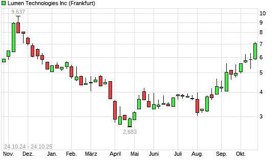 Mit dem Anstieg auf 6,43 EUR hat die Lumen Technologies-Aktie (ISIN US5502411037) am 23.10.2025 ein neues 6-Monats-Hoch erreicht und damit den Kurs vom 15.10.2025 eingestellt.