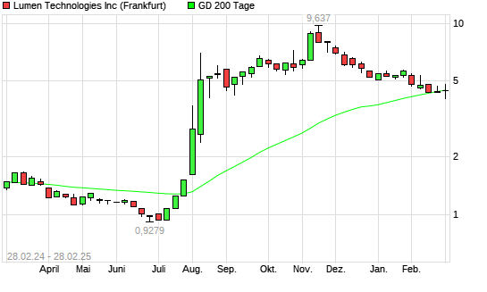 Mit dem Rücksetzer auf 4,48 EUR hat die Lumen Technologies-Aktie am 27.02.2025 die 200-Tage-Linie nach unten gekreuzt.