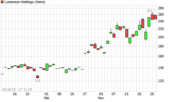 Mit dem Anstieg auf 261,10 EUR hat die Lumentum-Aktie (ISIN US55024U1097) am 26.11.2025 ein neues All-Time-High erreicht und damit den Kurs vom 25.11.2025 eingestellt.