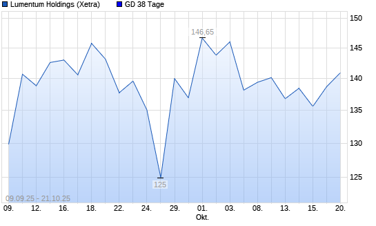 Mit dem Anstieg auf 140,30 EUR hat die Lumentum-Aktie am 20.10.2025 die 38-Tage-Linie nach oben gekreuzt.