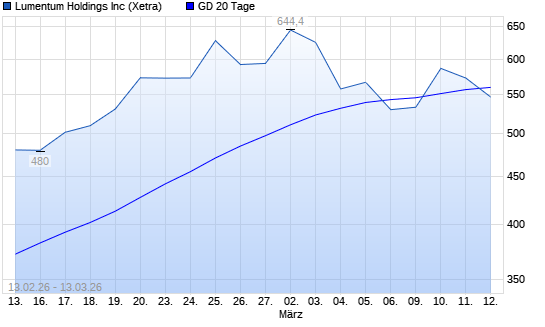 Mit dem Rücksetzer auf 550,80 EUR hat die Lumentum-Aktie am 12.03.2026 die 20-Tage-Linie nach unten gekreuzt.