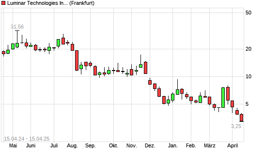 Mit dem Rücksetzer auf 3,54 EUR hat die Luminar Technologies-Aktie (ISIN US5504243032) am 14.04.2025 ein neues All-Time-Low erreicht und damit den Kurs vom 11.04.2025 eingestellt.
